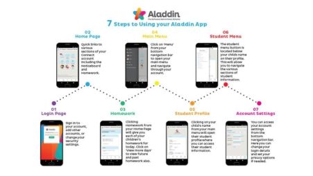 - Aladdin App for teachers – which allows them to take attendance, receive notice board alerts, etc.